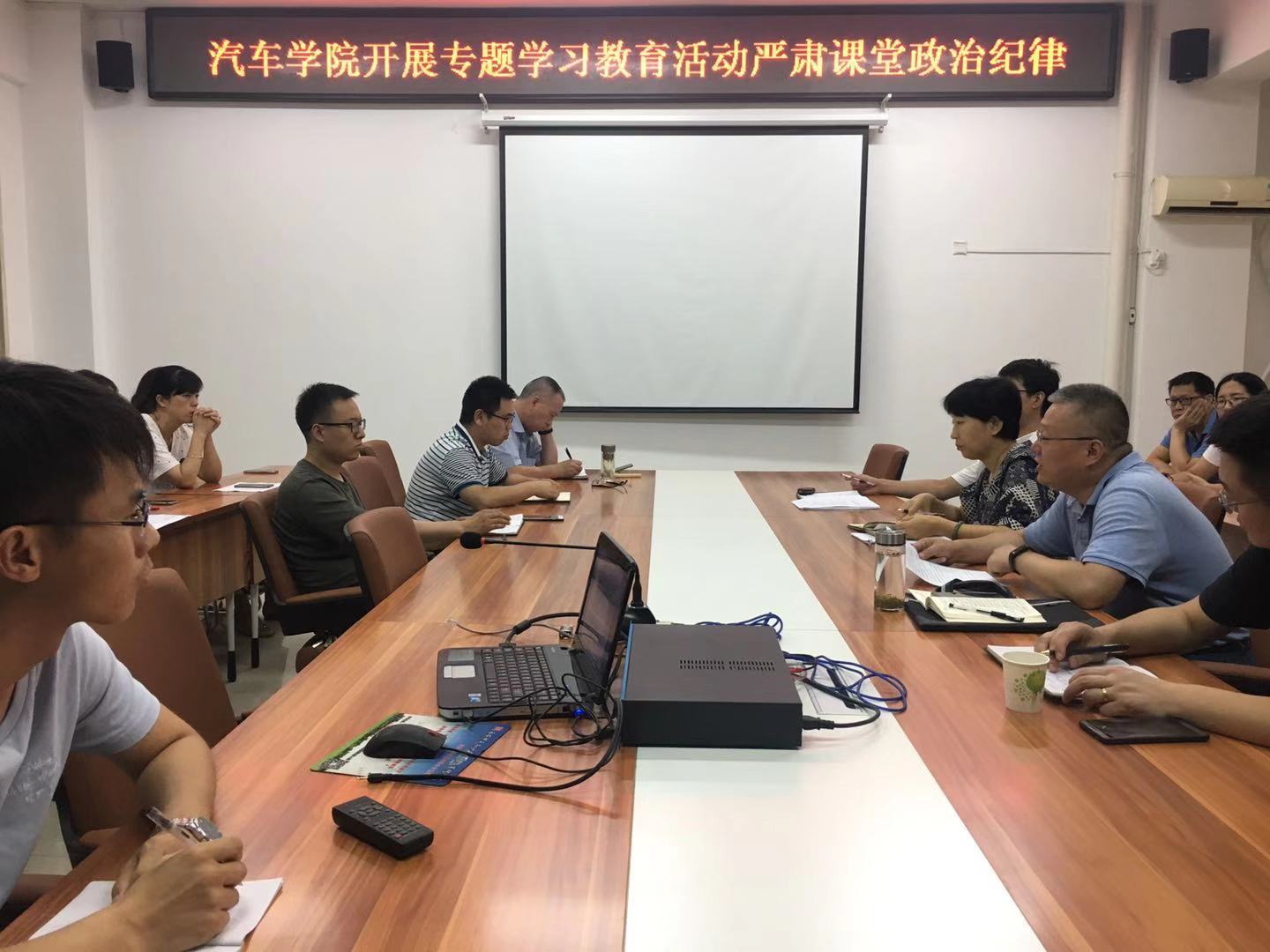 8月28日下午,汽车学院在崇文南楼A505会议室召开“纪律教育学习宣传月”动员大会。全体教职工参加了会议。会议由党总支书记高亚宁主持。