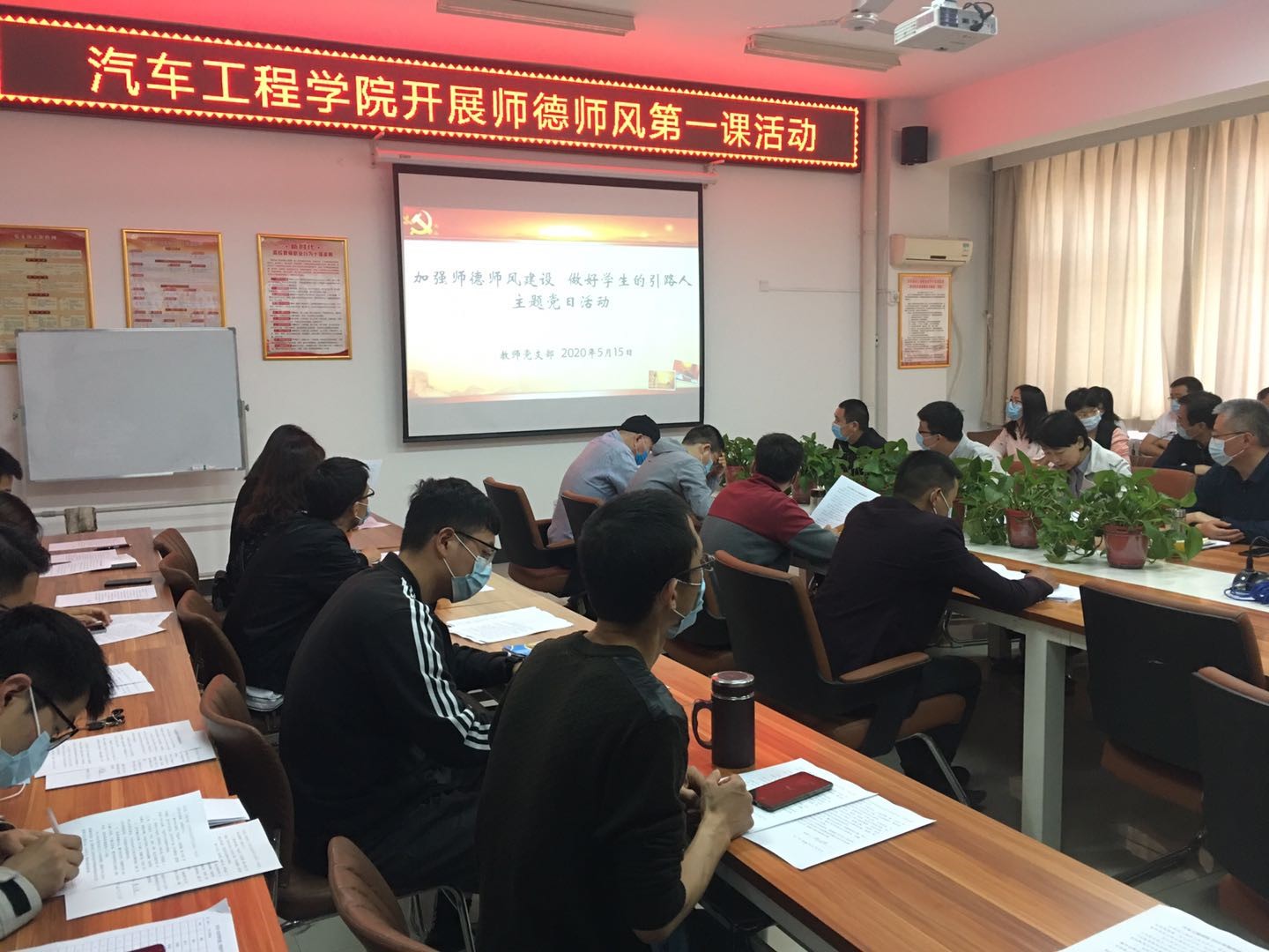 坚持师德为上,以立德树人为出发点和立足点,为进一步培育和加强教师高尚道德情操,5月15日,汽车工程学院教师党支部召开加强师德师风建设,做好学生的引路人师德师风“师德师风”主题党日活动。