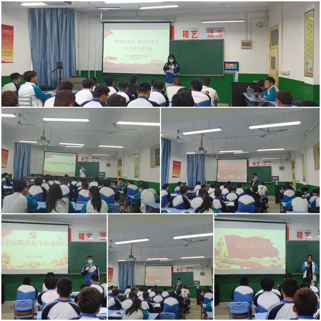 为深入学习贯彻习近平总书记在党史学习教育动员大会上的重要讲话精神,激发广大党员爱党、爱国的巨大热情,进一步提升支部党员的政治理论素养、提高政治站位,4月23日下午,汽车学院学生党支部举办“学百年党史 践初心使命”大学生微党课大赛。党支部委员、学生党员以及入党积极分子等50名师生到场观摩。