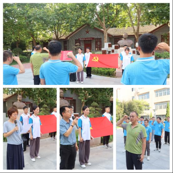 宣誓仪式在庄严雄伟的《国际歌》中拉开了帷幕,首先支部宣传委员杨海莹宣读了新党员名单。宣读结束后,老党员史岩峰同志领誓,19名新发展党员、正式党员,举右拳,向鲜红的党旗庄严宣誓,向党和人民做出了庄严的承诺,接着由支部委员为各位新党员佩戴党徽。随后,新党员代表严世龙结合个人入党的心路历程以及自己在思想、入党动机等方面的转变,从提升思想政治修养、发挥党员先锋模范作用、树立终身学习观念三个方面向党组织表达为党和人民终身奋斗的信心与决心。