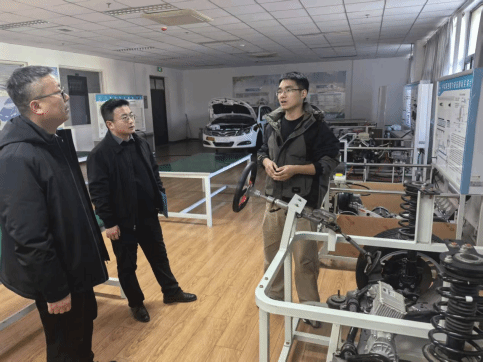 活动期间,谢金鹏助理一行实地考察了汽车工程学院实训室,重点观摩了用于汽车维修工、机动车检测工职业技能等级认证的先进设备及操作环境。朱荣老师详细介绍了汽车维修工和机动车检测工这两个证书考核的流程规范、设备要求、评分标准及培训要点,分享了我校在职业技能等级认证工作中的成功做法。