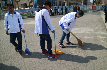 在活动当天,同学们自带劳动工具,不怕苦、不怕累、不怕脏,认真负责地打扫,利用中午一个多小时的时间彻底清洁了校园。每位同学用实际行动证明属于自己的那一份雷锋精神。