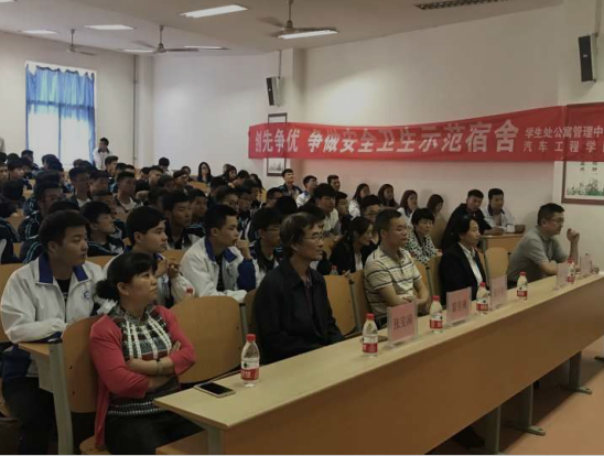 为了加强宿舍文化建设,营造良好的宿舍文化氛围,完善以宿舍为阵地的学风建设,5月22日下午,由公寓管理中心主办、汽车学院承办的首届宿舍文化节启动仪式,在崇文西楼203教室举行,学生处副处长张科海、院党总支书记高亚宁、公寓管理中心主任雷引周、学工办主任刘冽、学院辅导员及200余名学生参加此次活动。本次活动由学工办主任刘冽主持。