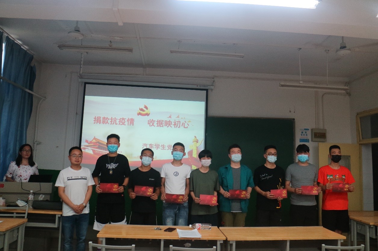 6月4日下午四点半,汽车学生党支部在崇文北楼402举行了“捐款抗疫情 收据映初心”的主题党日活动。活动由学生第一党支部组织委员常雪娇主持,大二全体学生党员参加了此次活动,大三学生党员线上观看直播参与互动。