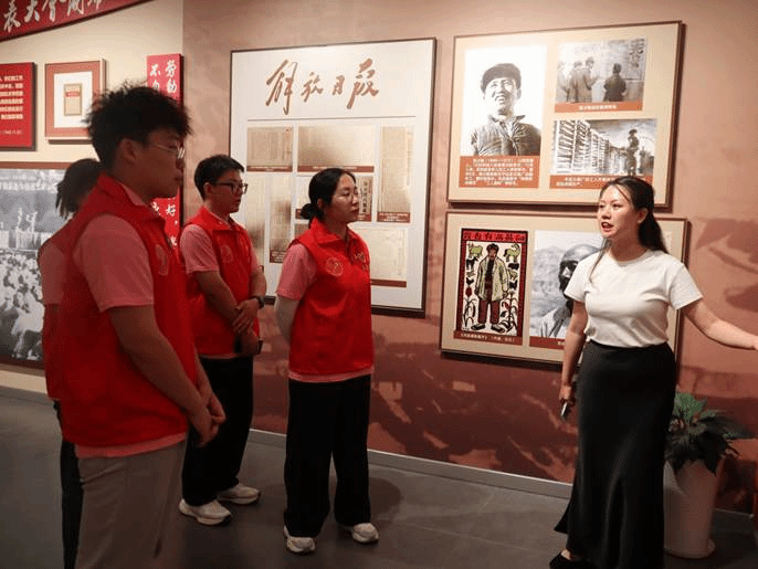 “展览馆里锈迹斑斑的农具、补丁摞补丁的军装,让我们真切感受到革命前辈‘自己动手、丰衣足食’的坚定信念。”该校实践团一名成员在笔记本上写下感悟。师生们驻足于《南泥湾大生产》场景复原区,凝视着模拟开荒的雕塑群像,仿佛听到80年前劳动号子响彻山谷的激昂回声。