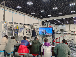 复赛围绕发现并解决动力电池生产过程中关键设备——模切机的故障而展开,11支队伍分别从模切机伺服电机异响、极耳尺寸超差、测长辊测量不稳定等多个方面开展了分析,并借助新能源动力电池智造工程技术中心的实际生产设备进行了技能演示。汽车智造教研室全体教师全程观看了学生的技能展示并为每支队伍打分,同时对学生进行了现场指导和点评。