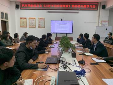 为深入学习习近平新时代中国特色社会主义思想,加深对中国之路、中国之治、中国之理的理解,10月5日,汽车工程学院党总支于崇文楼五楼会议室召开了《习近平谈治国理政》第四卷专题学习会。会议由汽车工程学院党总支书记高亚宁主持,全体党员参加。
