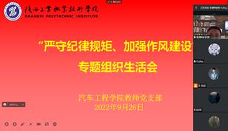 为引导教师党员坚定信仰信念,严守纪律规矩;增强责任担当,改进工作作风。9月27日下午,汽车工程学院教师支部在崇文楼五楼会议室召开专题组织生活会。汽车工程学院党总支书记高亚宁全程督导,会议由教师党支部书记许冀阳主持,教师党支部全体党员线上线下参会。