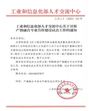 9月15日,工业和信息化部人才交流中心发布《关于开展产教融合专业合作建设试点工作的通知》,文件公布了国家级第一批产教融合专业合作建设的试点单位及专业,我院新能源汽车技术专业成功入选。
