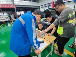 图为李江和郭炎伟老师就“汽车机电维修”赛项中别克威朗轿车故障诊断的考核要求、诊断流程、思路、方法、逻辑分析等进行指导与实操。汽车工程学院根据礼泉职教中心汽车专业老师提出的具体问题和需求,提前进行了资料研读和培训设计,有针对性的制定了培训方案并进行了扎实的指导帮扶工作,得到了礼泉职教中心汽车专业教师和学生的一致肯定。