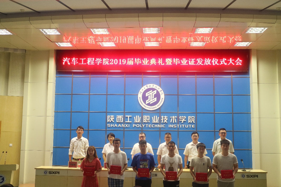 伴随着雄壮的国歌,典礼拉开了序幕。汽车工程学院班子成员为毕业生代表颁发毕业证。随后,2019届毕业生代表汽营1602班韩宝钏同学作毕业感言,教师代表甘蓉老师作临别赠言。最后,汽车工程学院院长李选芒向毕业生致辞,他鼓励同学们不忘初心,满怀信心,以“守得云开见月明”的耐心,以“不破楼兰终不还”的决心,在祖国的万里长空放飞青春希望,在中华民族伟大复兴的征程中梦想成真。