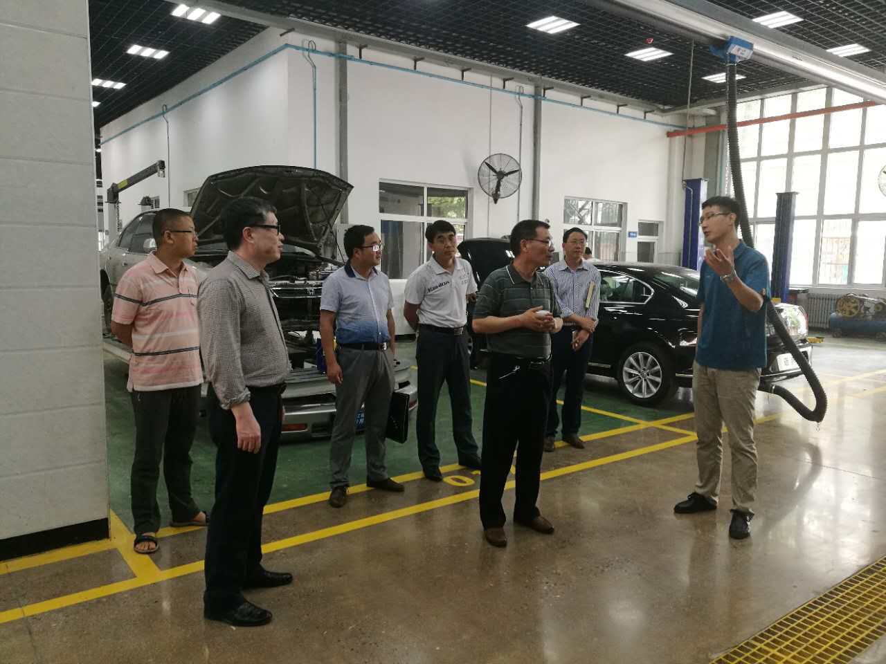 李选芒院长对来宾的到访表示了欢迎,并对汽车工程学院的部门概况、师资队伍、专业体系、实训基地建设等方面进行了介绍。会上,双方就如何进行校内生产性实训基地建设进行深入的交流。会后,李选芒院长带领来宾参观了汽车工程与服务技术训练中心、汽车商务训练中心、汽车机修车间、汽车钣喷车间、汽车电控实训室、汽车冷作实训室、汽车美容服务中心等实训基地。