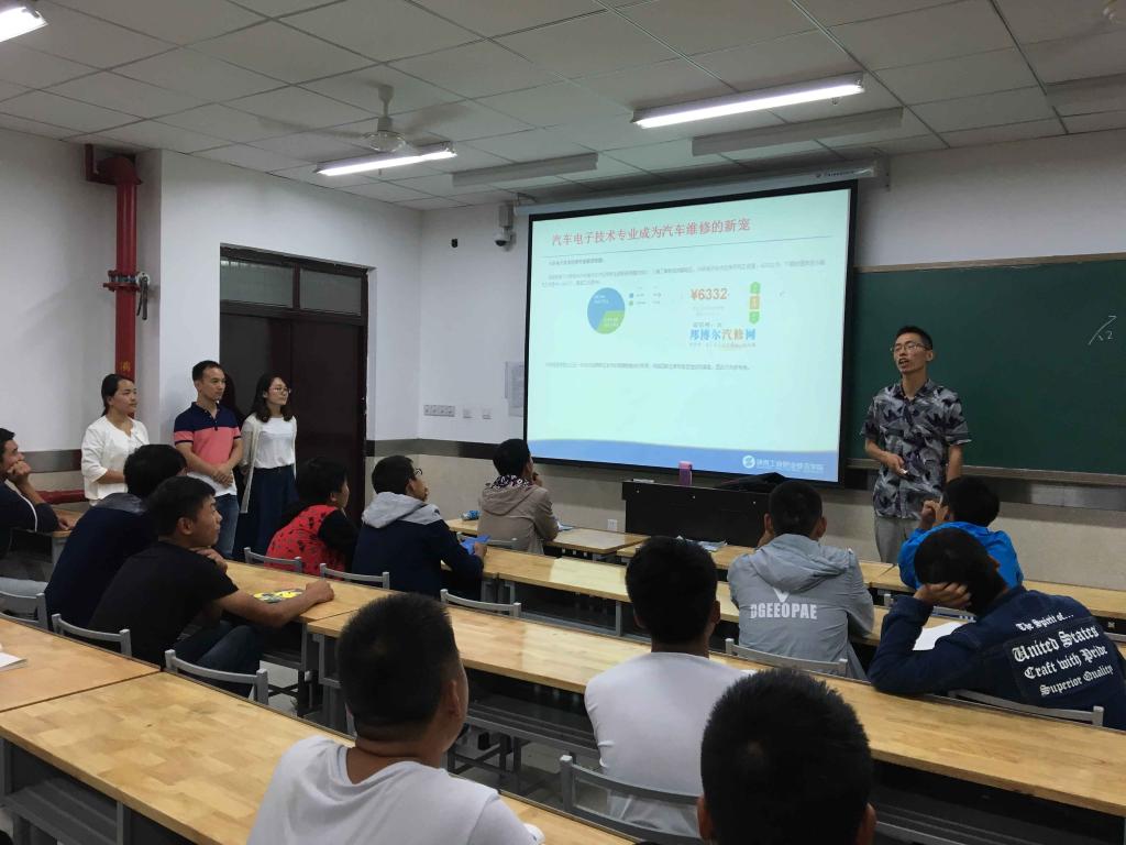 9月18日晚,汽车电子技术教研室在理实楼806教室成功举行了专业介绍活动,该教研室主任郭炎伟老师、助教吴晨老师、宋真玉老师、韩丹老师以及数名大二学生代表和2016级汽车电子专业全体新生参加了本次活动。