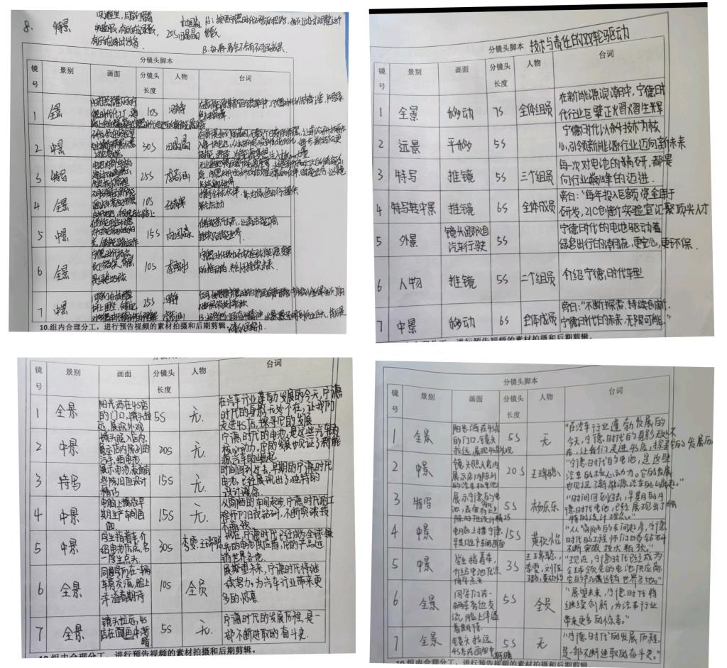 在对宁德时代有了全面深入的认识后,学生们分组进行短视频策划与制作。从脚本撰写、拍摄取景到后期剪辑,每个环节都凝聚着学生们的智慧和汗水。他们充分发挥自己的创意,多角度展现宁德时代的魅力和校企合作的重要意义。有的小组聚焦宁德时代的先进电池技术,有的小组则以订单班学生的成长故事为切入点,展现校企合作对人才培养的积极作用。在短视频剪辑过程中,学生们运用所学的专业知识,熟练操作剪辑软件,对拍摄素材进行精心筛选、剪辑和合成。他们注重视频的节奏把握、画面美感和音效搭配,力求制作出高质量、有吸引力的短视频作品。