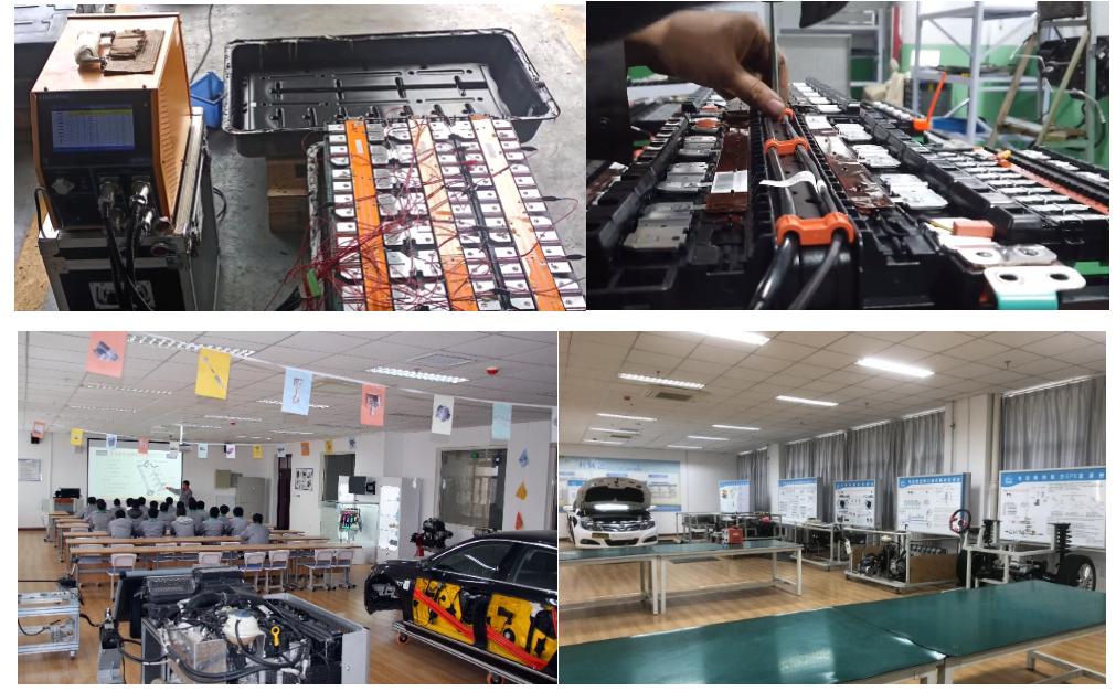 本专业拥有汽车工程与服务技术训练中心、汽车标准化养护训练中心、汽车构造理实一体化实训室、汽车基础电气实训室、汽车拆装实训室、汽车电控实训室、新能源汽车故障诊断实训室、汽车仿真实训室、新能源汽车构造理实一体化教室等十余个设备齐全的校内实训基地。